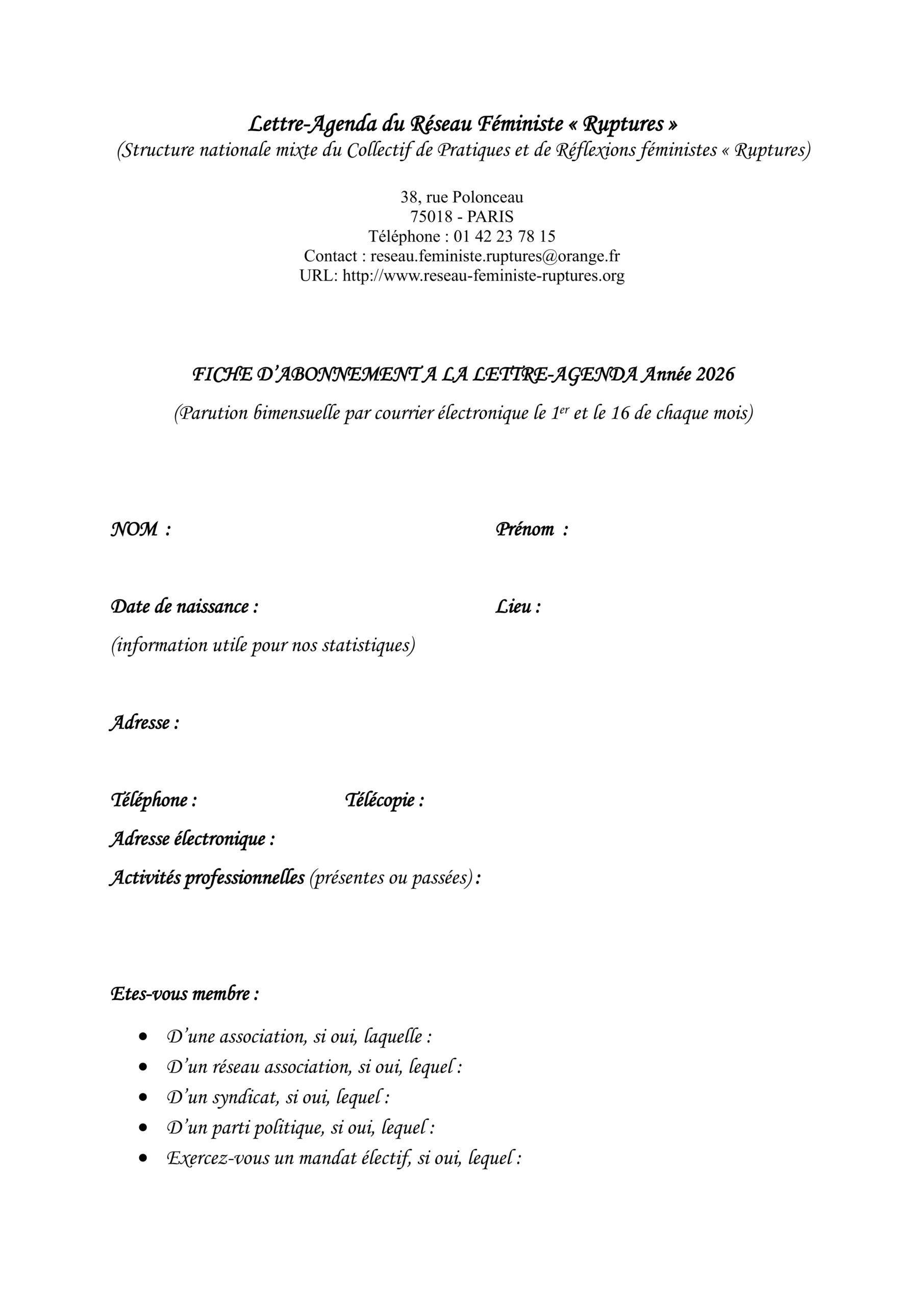 • Réunions publiques organisées par le Réseau Féministe « Ruptures »